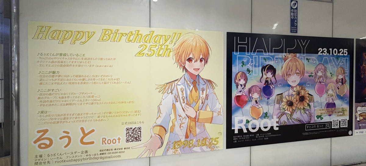 渋谷駅地下には現在、すとぷりのるぅと君の誕生日広告が掲載されています!🎂