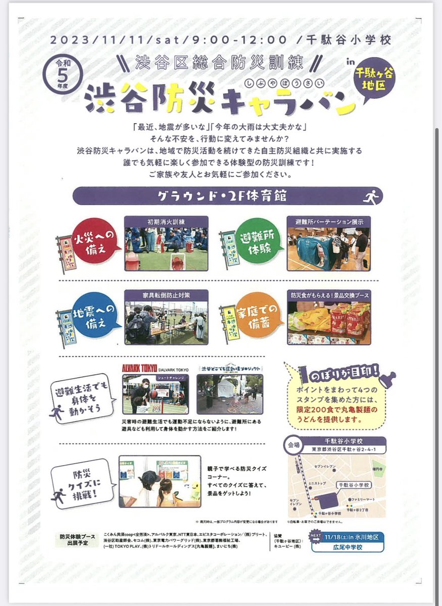 本日千駄ヶ谷小学校で、#防災キャラバン やっています/900-1200まで