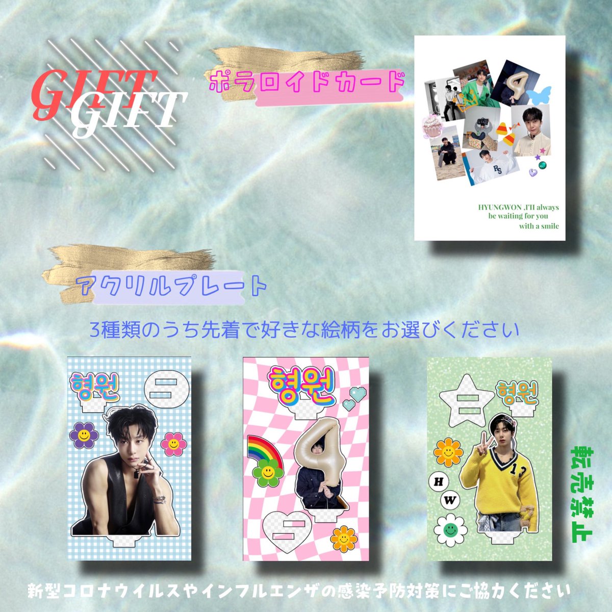 明日11/14(火)からは MONSTA X ヒョンウォンさんのアクリルプレートの配布が始まります。デザインはお選びいただけます。