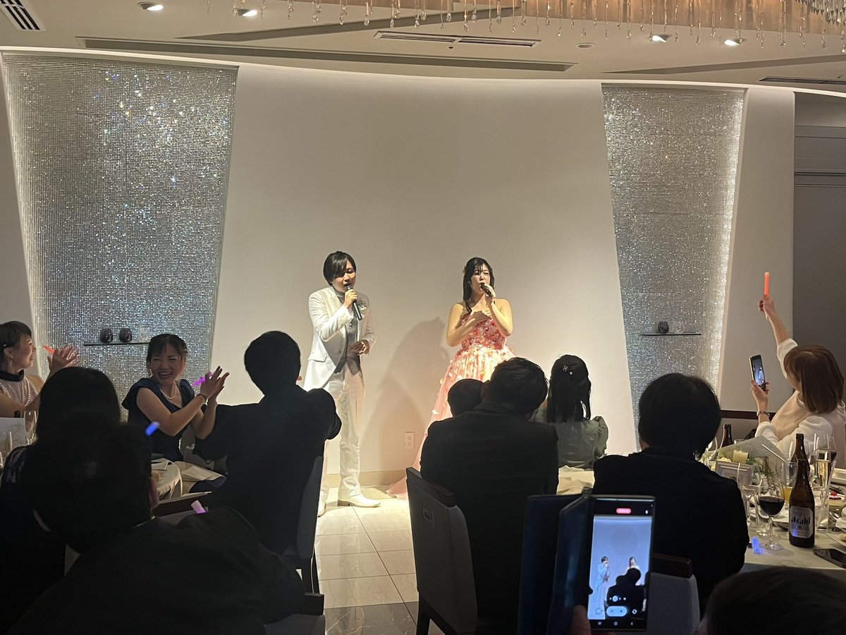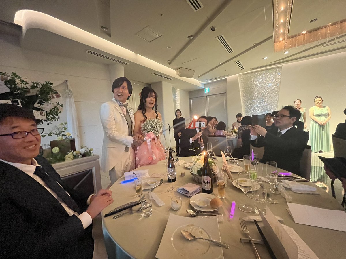 恵比寿の音楽スクール「ガウディ」の先生と仲間の結婚式。 オープニングから新婦の歌声が響き、化粧直し中は新郎のバンドのPV、新郎新婦のセッションをペンライトで応援するなど、音楽と笑顔が溢れる素敵な宴でした。 久しぶりにゆっくり仲間と語らいました。 おめでとうございます!!#ガウディ 万歳