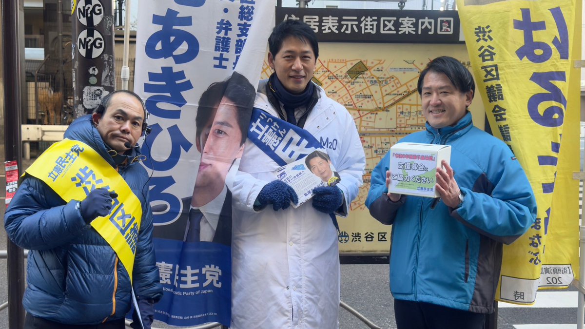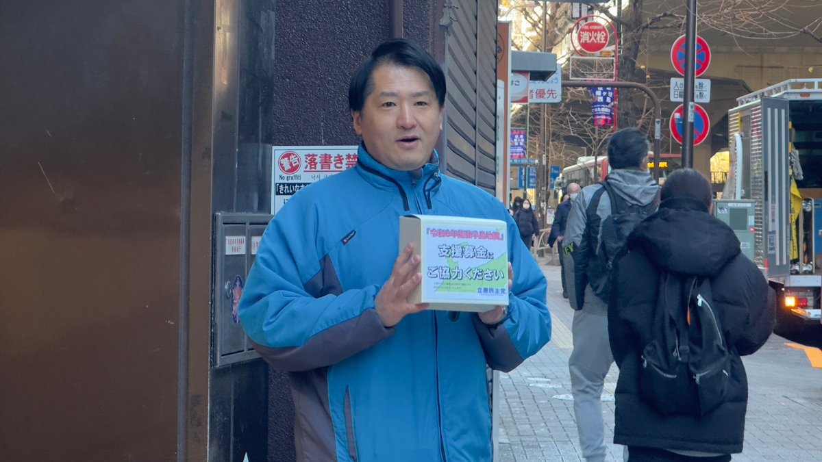 #幡ヶ谷駅 北口にて 街頭演説とともに、能登半島地震の被害に遭われた方への支援 #募金 を呼びかけました。 忙しい出勤途中に足を止めて募金してくださった皆様、ありがとうございました。全額お預かりし党本部から支援団体へ寄付させていただきます。 #松尾あきひろ 総支部長 #はるた学 区議会議員 と