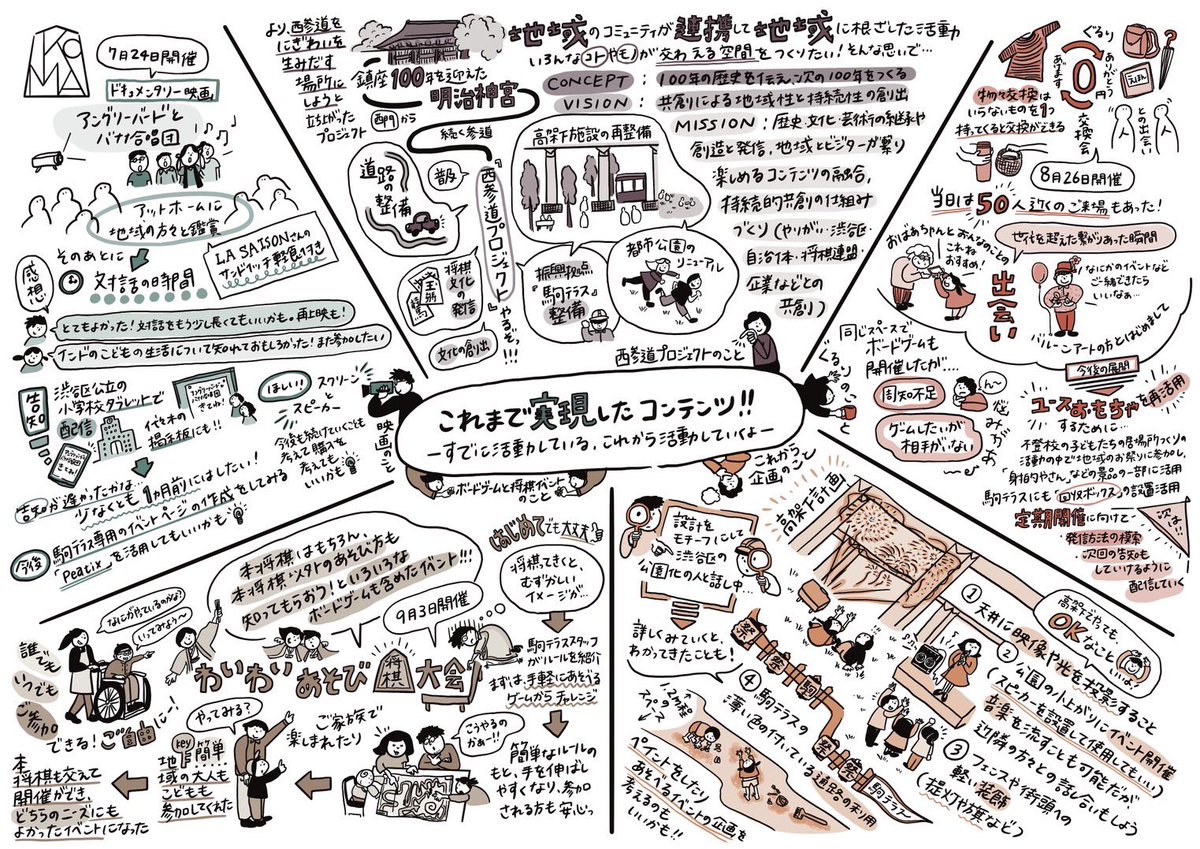 こちらも、まちの方から生まれた企画になります。みんなのちょっとこれをやってみたいという思いを一緒に実現してくれる場所に駒テラス西参道がなってきてます