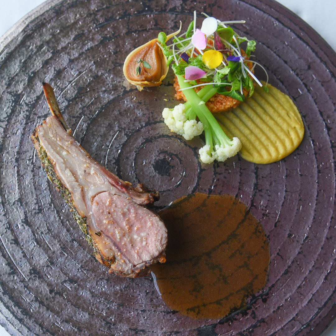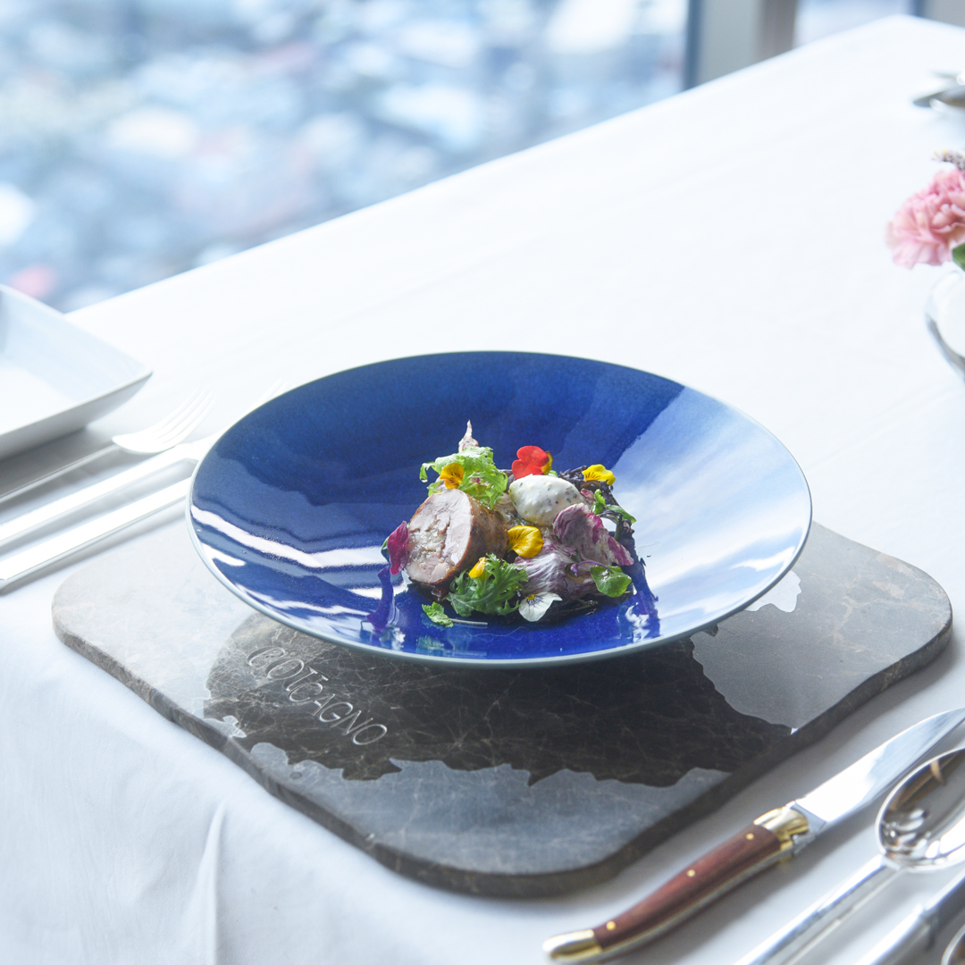 地上40Fからの眺望とともにフランス料理をお楽しみいただける「クーカーニョ」。2月はフランス産仔羊背肉を使った「エルブ ド プロヴァンスを纏った仔羊背肉のロティ アリッサを加えたクスクスとジュ ド アニョー」などをご用意してお待ちしております。