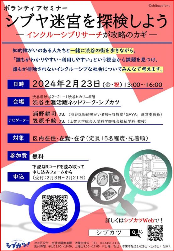 【開催】知的障がいのある人と関わるボランティアに興味がある人に向けたセミナーを開催します。知的障がいのある人たちと一緒に街歩きをし、インクルーシブな社会について考えます。