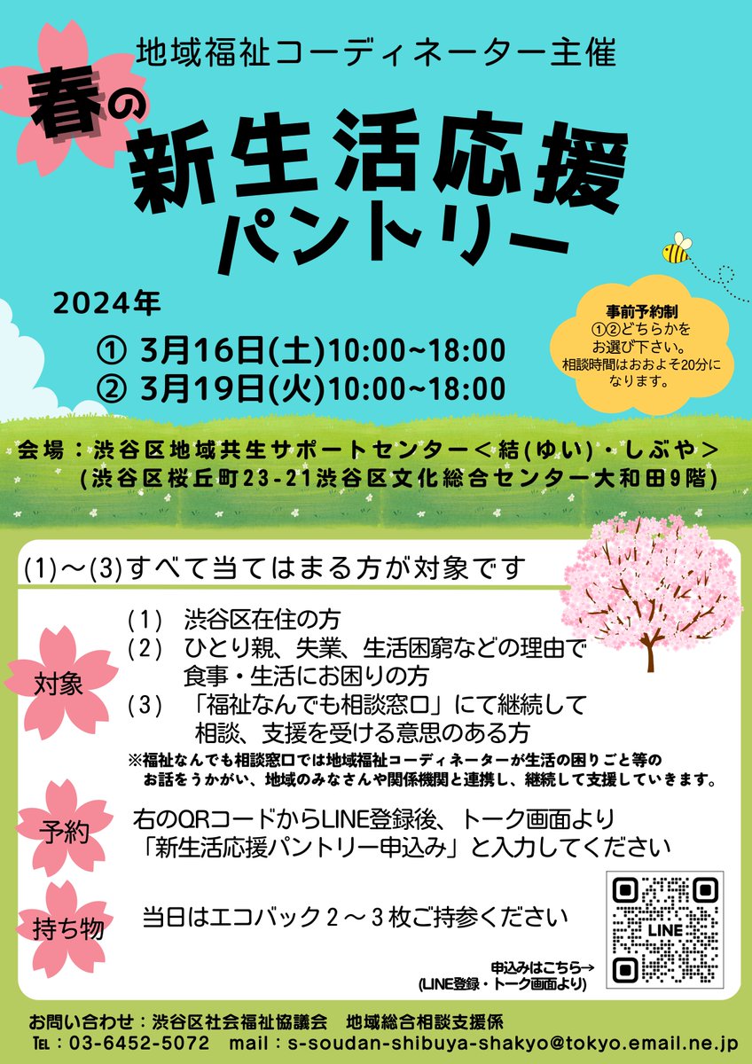 2024年3月16日(土)、19日(火)に渋谷区地域共生サポートセンター結(ゆい)・しぶやで『新生活応援パントリー』を実施します🌸