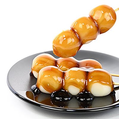 みたらし団子は、もっちりとした大きめのお団子に秘伝の甘たれを、たっぷりと