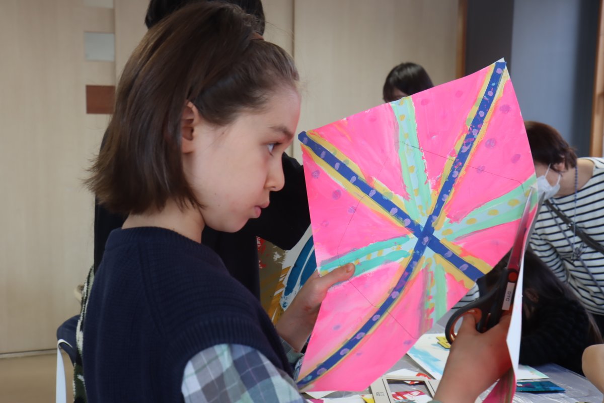 4/7(日)絵描きの田中紗樹さんをお迎えし、アートスクール『カラフルな個性!オリジナル封筒を作ろう』を開催しました。