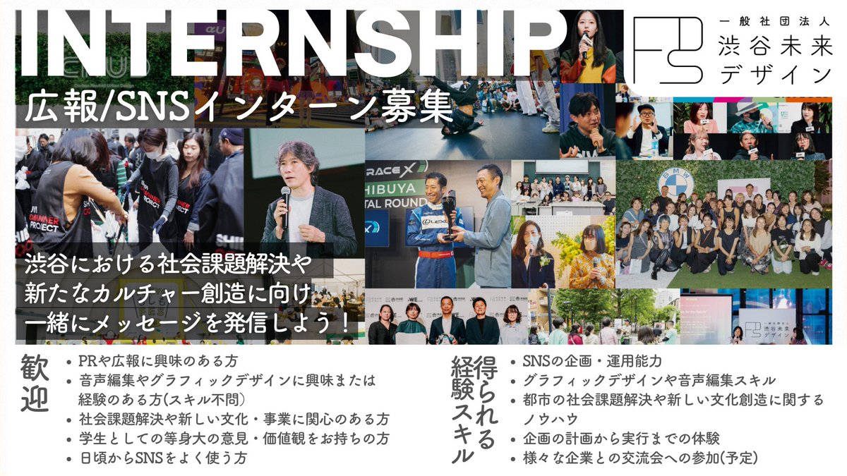 渋谷未来デザインが取り組む多様な事業・プロジェクトについて、SNSを中心に発信していただきます✨