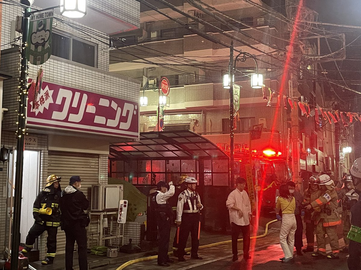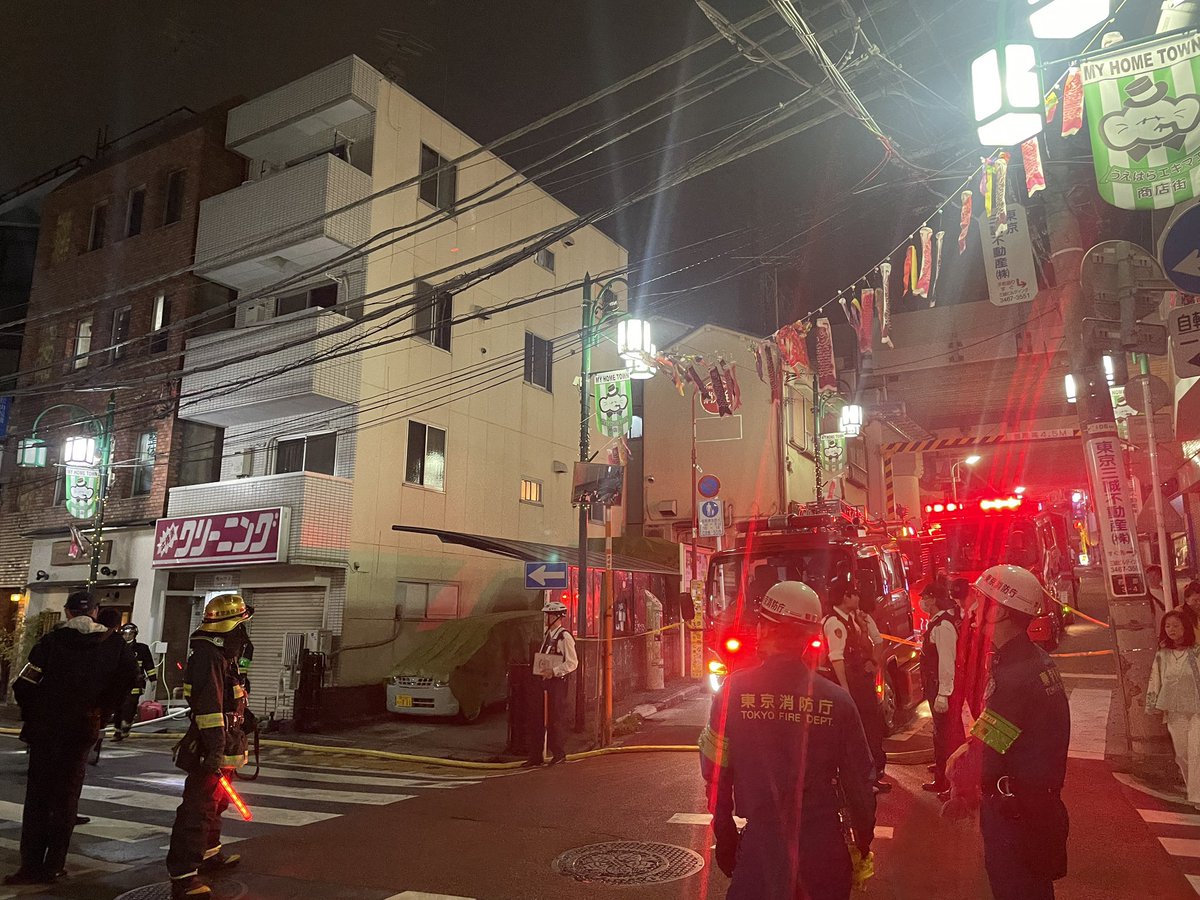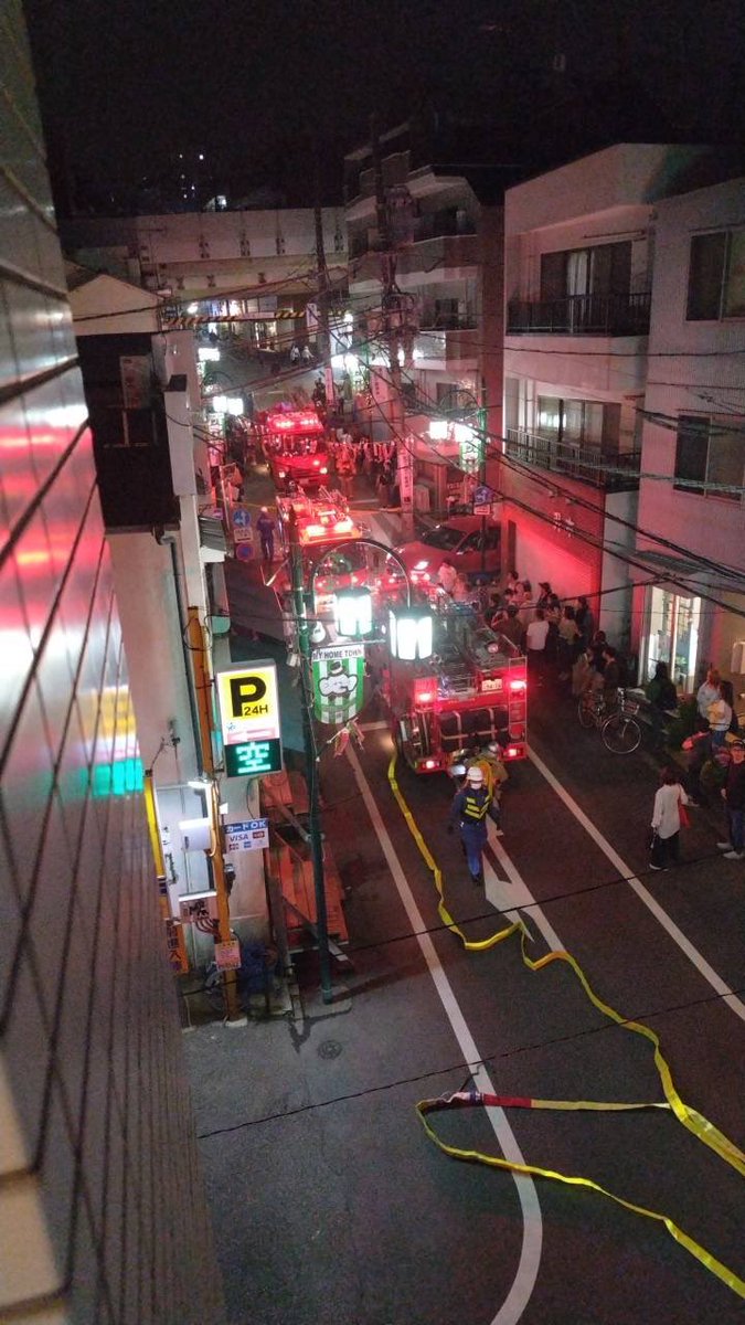 火元はビル三階のよもぎ蒸しの機械の漏電で、搬送されたのは4階のベランダに逃げた方とのこと