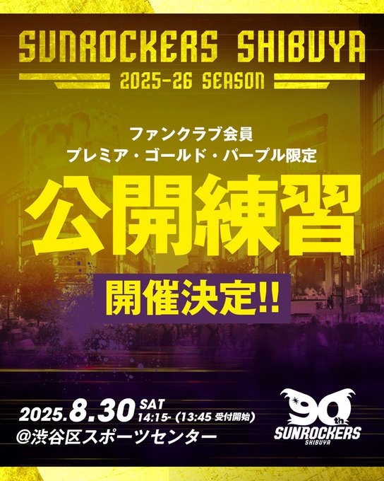 8/30(土)渋谷区スポーツセンターで公開練習開催決定全選手が今季初めて集結!ファンクラブ限定で、練習後には記念撮影やサイン会も渋谷ラストイヤーの幕開けを、特別な体験で迎えよう#CLUBSUNSプレミ..