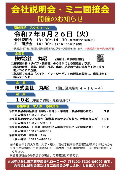 イベントのお知らせ8月26日(火)【(株)丸昭】皮革製小物(財布・袋物等)のOEMによる製造および卸。製造規模は業界トップで、商品は全て有名ブランドです。高品質なメイドインジャパンの製品を企画から納品..
