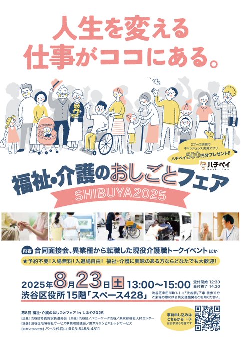 \\福祉・介護のおしごとフェアのお知らせ//日時:8月23日13時~場所:渋谷区役所15階↓↓参加企業などの詳細はこちらをご確認ください↓↓https://jsite.mhlw.go.jp/tokyo..