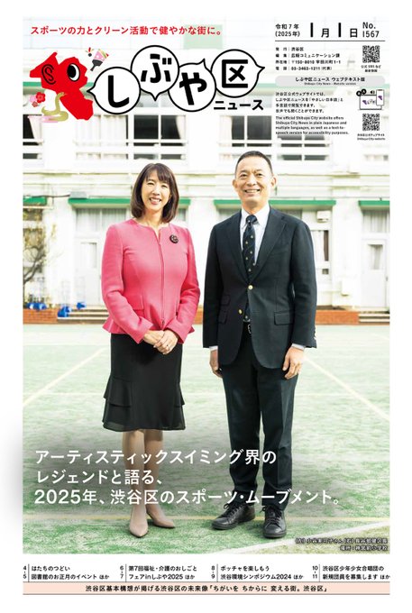 【お知らせ】しぶや区ニュース1月1日号を発行しました。特集は「アーティスティックスイミング界のレジェンドと語る、2025年、渋谷区のスポーツ・ムーブメント。」内容は「ボッチャを楽しもう」などです。(広..