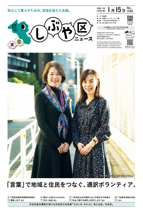 【お知らせ】しぶや区ニュース1月15日号を発行しました。特集は「『言葉』で地域と住民をつなぐ、通訳ボランティア。」内容は「7年度住民税の申告」などです。(広報コミュニケーション課)https://ci..