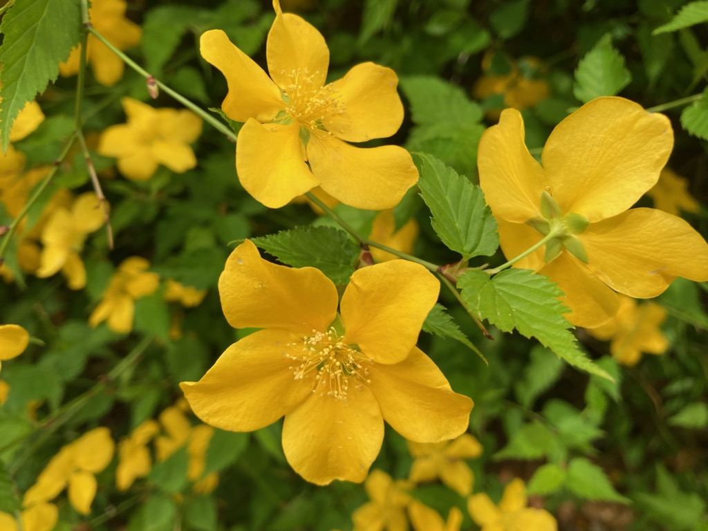 西門を入ると見える明るい黄色の花はヤマブキ。大河ドラマでも話題の清少納言の『枕草子』の中で、中宮定子から送られてきた手紙には、ヤマブキがあり、その花びらに一言、「いはで思ふぞ」と書かれていた。というエ..