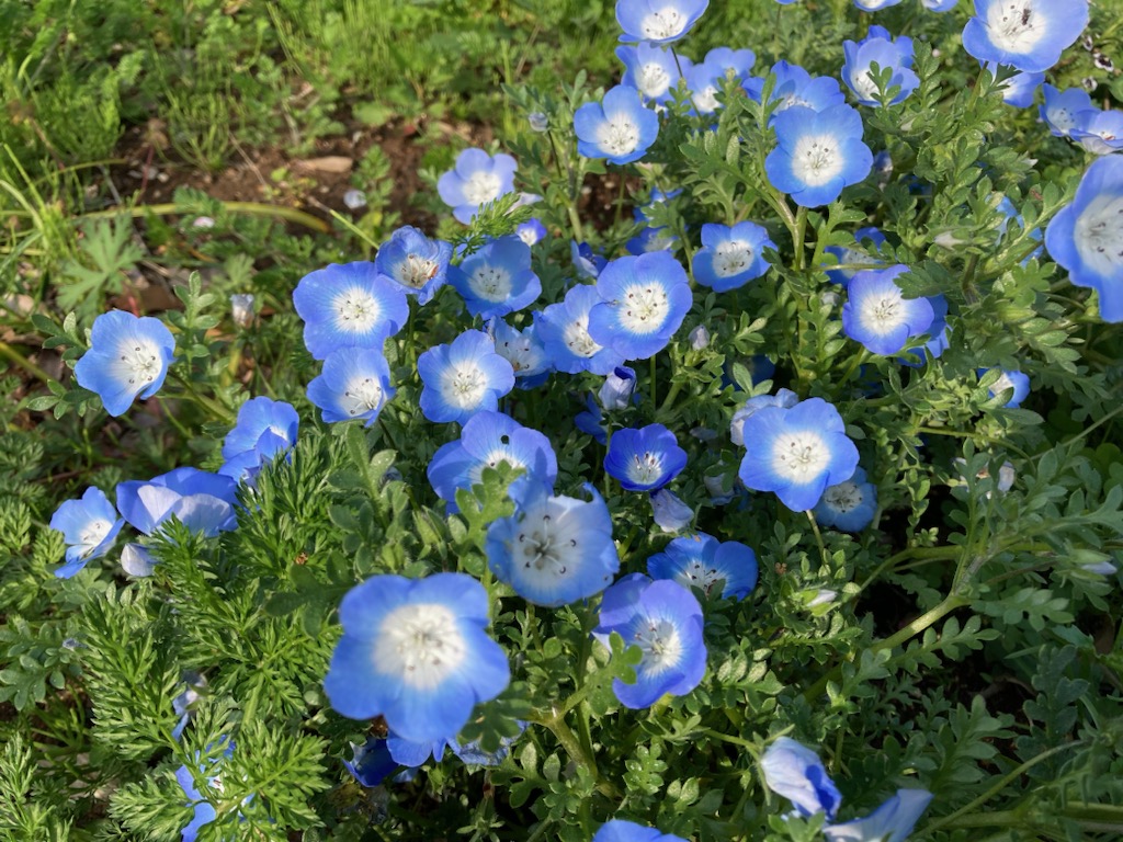 フラワーランドで、ネモフィラが咲いています。舎人公園でネモフィラの絨毯を楽しめるようです。おでかけください。開花状況等は、引用元の舎人公園へお問い合わせください。#代々木公園#ネモフィラフラワーランド..