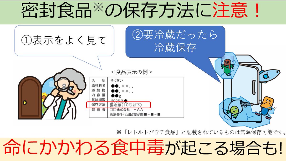 【#ボツリヌス菌 食中毒に注意!】 強い毒性のある「ボツリヌス菌」が原因の食中毒が他県で発生しました。 この菌は真空パックなどの密封食品の中でも、常温で増えます。 「要冷蔵」表示の食品は必ず冷蔵保存し、袋の膨張や異臭のある時は絶対に食べないでください。 詳しくは https://mhlw.go.jp/seisakunitsuite/bunya/kenkou_iryou/shokuhin/syokuchu/dl/leaflet_241105_01.pdf…