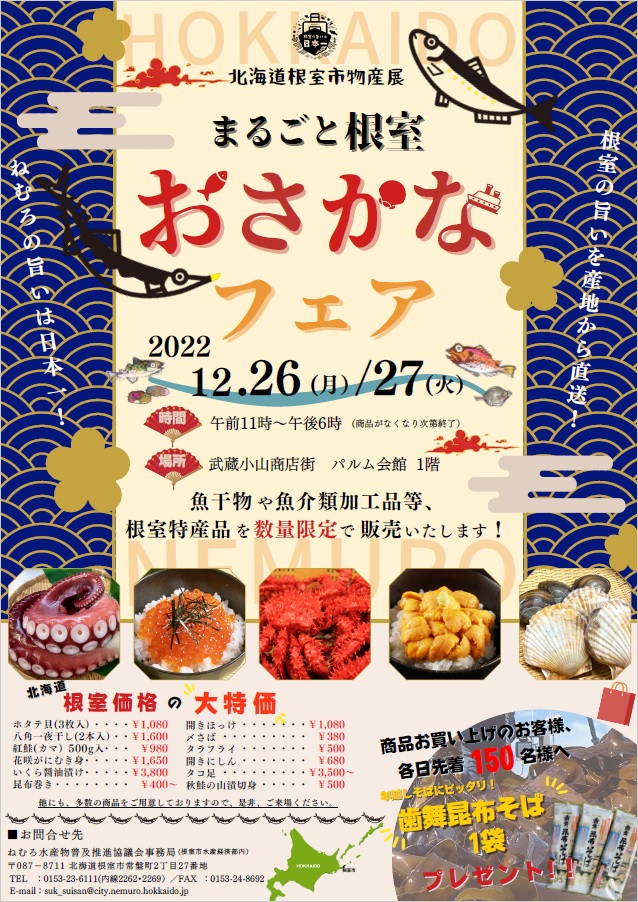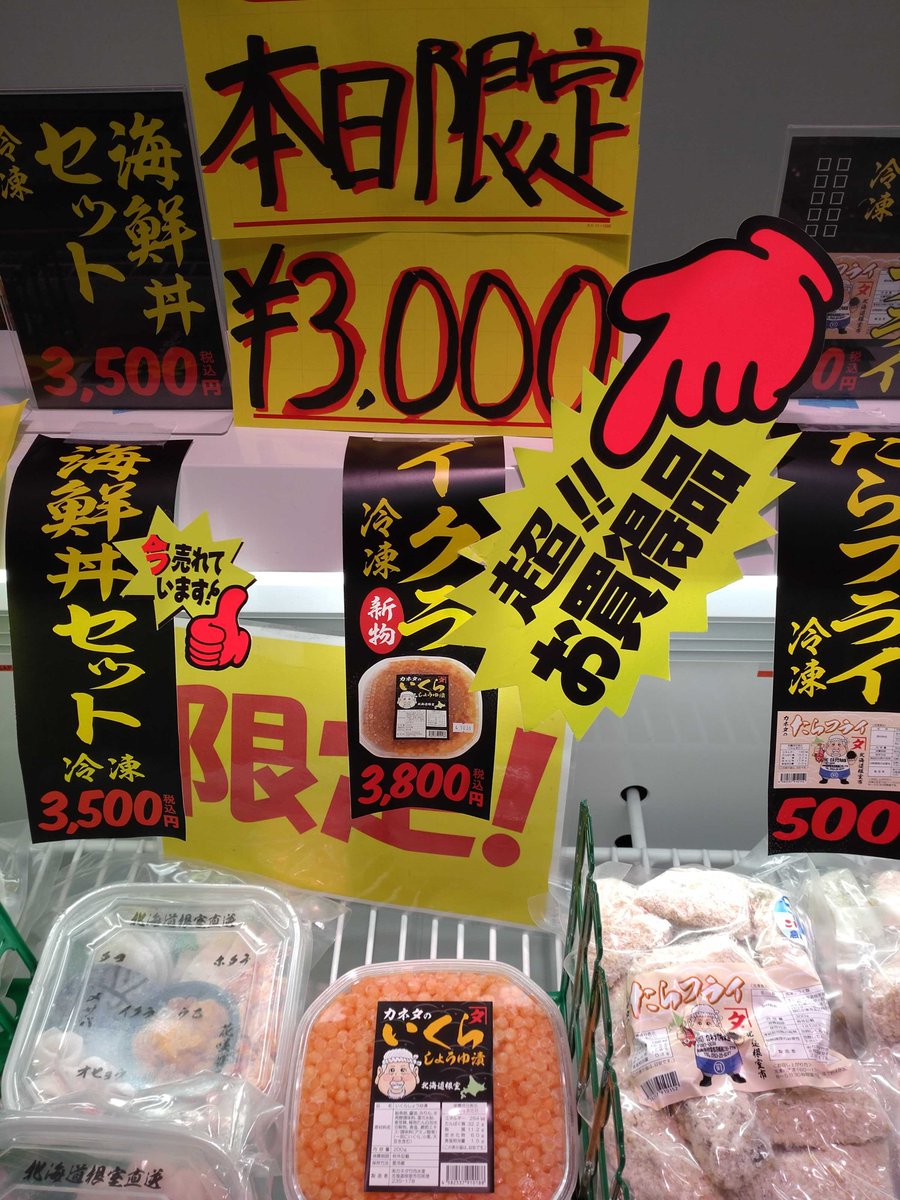 【まるごと根室おさかなフェア】本日まで!カニやいくらをはじめ、産地直送のおいしい海産物をたくさんご用意しております!こんなに大きいタコのあしも!年末年始の集まりに、今年1年がんばったご褒美に、おいしいおさかなはいかがでしょうか?(^^) #武蔵小山 #まるごと根室おさかなフェア