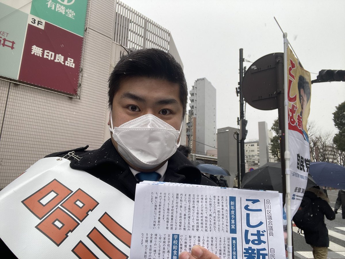 今朝は大井町阪急口にてご挨拶。7時あたりから雪❄️が降り始めました。