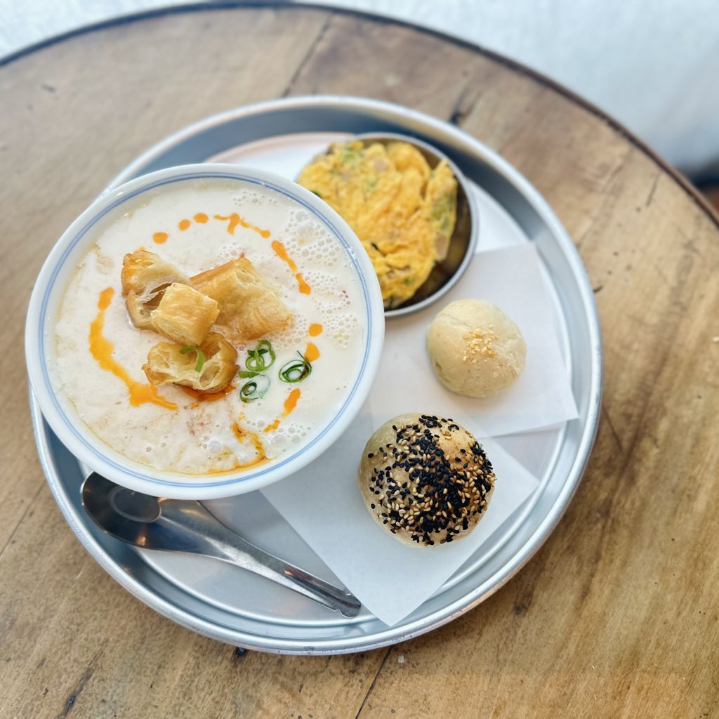 ずっと台湾朝ごはんのお店を探していて、やっと理想な渋い台湾。期待が高まりすぎて注文を相当迷ったけど、大好きな鹹豆漿。豆乳自体が新鮮で濃く、とても美味。やさしくてぷるぷる。黒糖/胡麻豆漿も絶対おいしいに決まってる。欲張って花生餅と韮饅頭も一緒に。次は何にしよう。東京豆漿生活・五反田