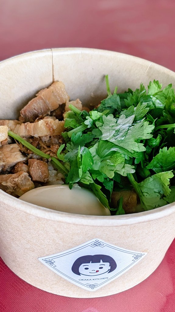 子どもとお散歩がてら、おかかキッチンでパクチー魯肉飯をお持ち帰り。おいしかった🤤