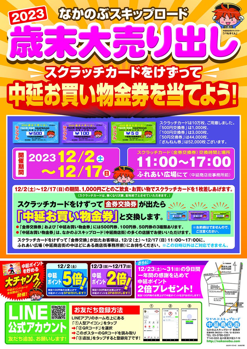 なかのぶスキップロードでは、明日12/2(土)~12/17(日)に、歳末大売り出しを開催❗️😆