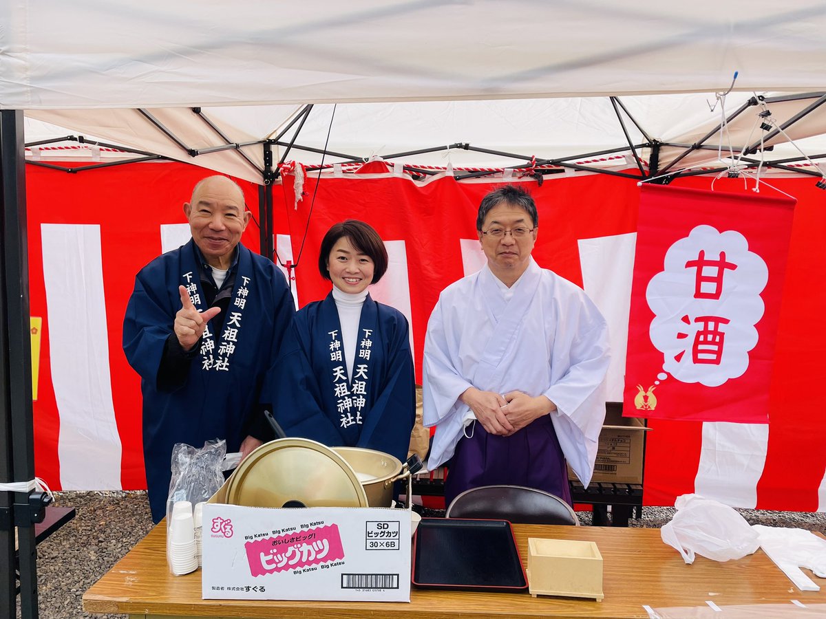 新年、下神明天祖神社⛩️のお手伝い。甘酒のお振舞いとお菓子掬いのおばちゃんしてました🙇♀️