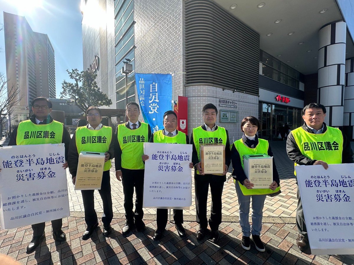 品川区議会自民党・無所属の会として皆で災害募金活動を行いました。イトーヨーカ堂前と武蔵小山駅で実施し、22万4439円5銭という多くの方のご寄付を頂きました。