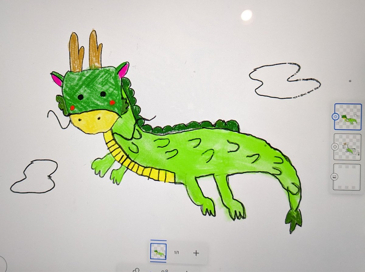 娘が描いた辰、かわいい。もう年が変わって1週間か、早いな〜