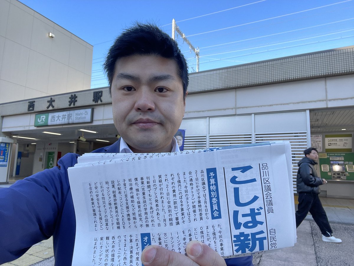 本会議を控えて西大井駅でこしば新聞62号を配り、本会議後に会派一同で区政報告を行いました。