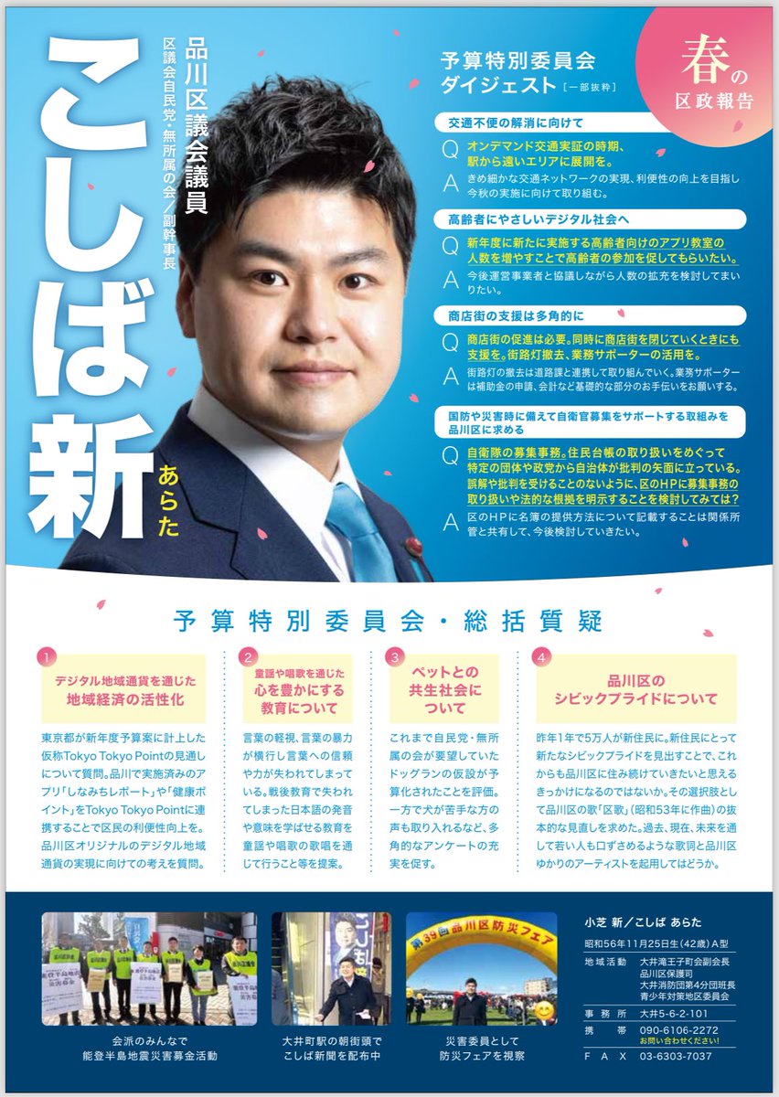 いつものこしば新聞とは違い会派の個人版広報誌を配らせてもらってます。