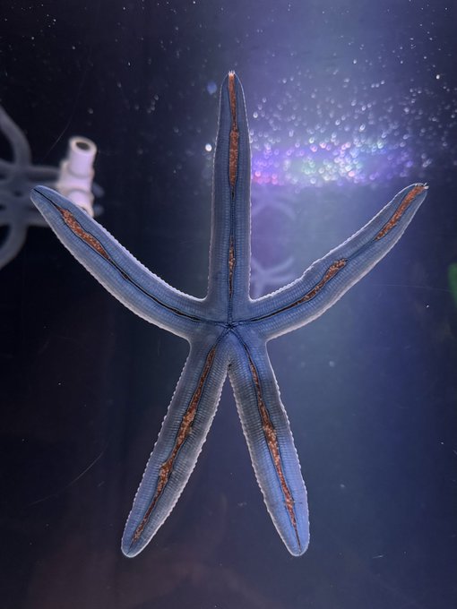 綺麗に水槽に張り付いていた #アオヒトデ を発見! 1Fのイマーシブエリア「パターンズ」にて期間限定で展示しています。 #アオヒトデ #BlueSeaStar #マクセルアクアパーク品川 #アクアパーク品川