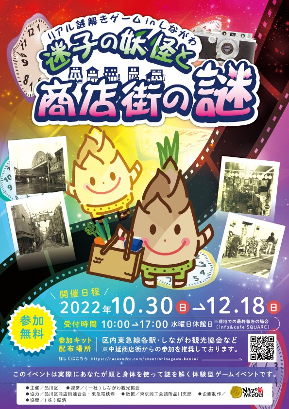 /本日最終日💨\今年、解き忘れの謎解きはありませんでしょうか?『リアル謎解きゲームinしながわ「迷子の妖怪と商店街の謎」』いよいよ本日最終日❗お天気の良い日曜日。商店街でのお買い物やお食事とともにお楽..