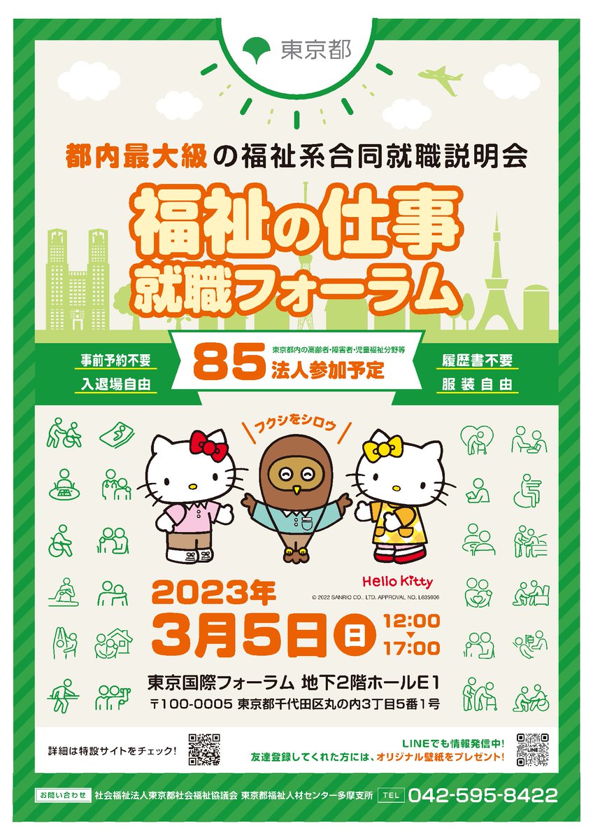 (事前予約・履歴書不要、入退場・服装自由です!🏃♂️)約85法人が出展する都内最大級の福祉系合同就職説明会「福祉の仕事 就職フォーラム」を開催します!👩💼👨💼日時:令和5年3月5日(日)12時か..
