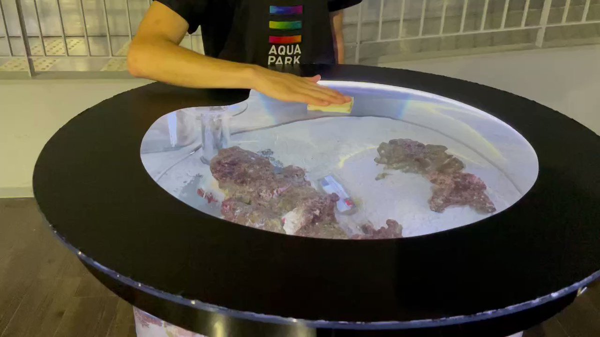 お掃除中の飼育スタッフの背後に…ごはん待ちのボロカサゴたち🐠 #マクセルアクアパーク品川#ボロカサゴ#ハダカハオコゼ01267