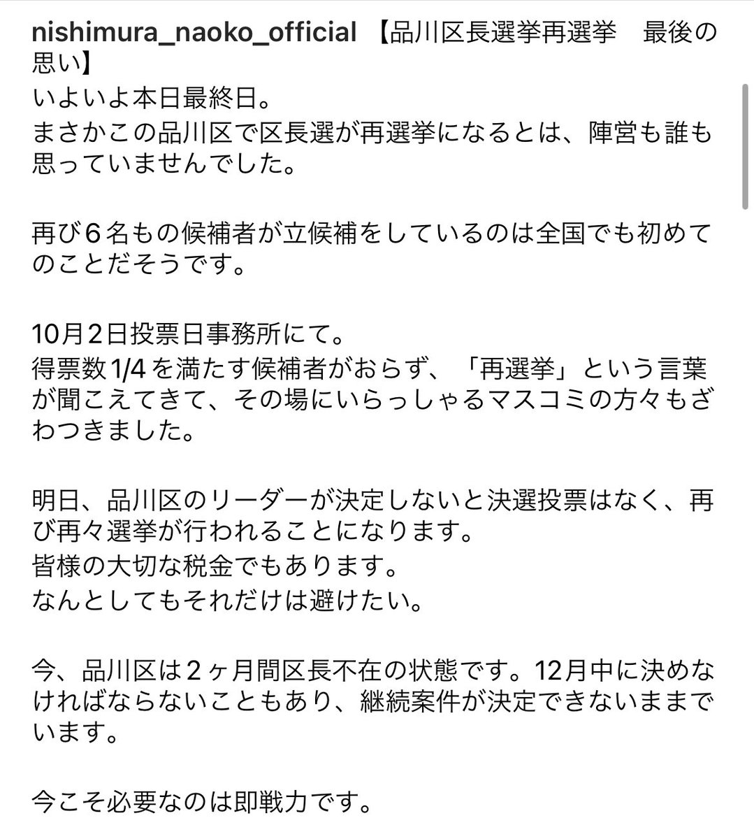 品川区長選挙再選挙、私からの最後のお訴えです!どうか1人でも多くの方に届きますように🙇♀️🙇♀️02446