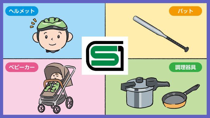 【SGマークとは】 製品を選ぶ際には、安全性を確認する事が重要です。SGマークとは製品が安全基準に適合している証で、万が一、製品の欠陥で事故が起きた場合は賠償制度があります(制限あり)。子ども用品や調理器具、玩具等、製品を購入する際は、ぜひSGマークをご確認ください。