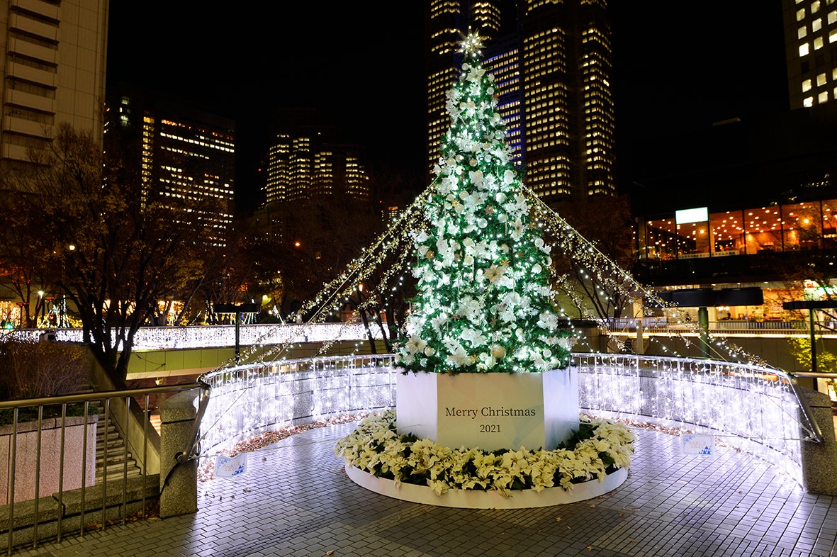【新宿イルミネーション2022 ⑫ illumination museum 2022〈LOVE〉】新宿アイランド や新宿三井ビルなど西新宿の5 ビルディング、4 ホテルが実施するクリスマスイルミネーションを鑑賞しながら、各施設での飲食や物販などを楽しむことができます。(※画像は2021年に撮影)www.kanko-shinjuku.jp/minisp..