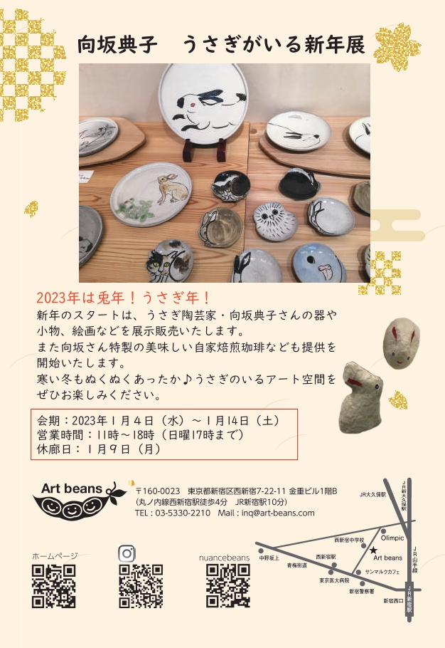 西新宿7丁目の「Art beans ギャラリー」では、向坂典子『うさぎがいる新年展』を開催中。