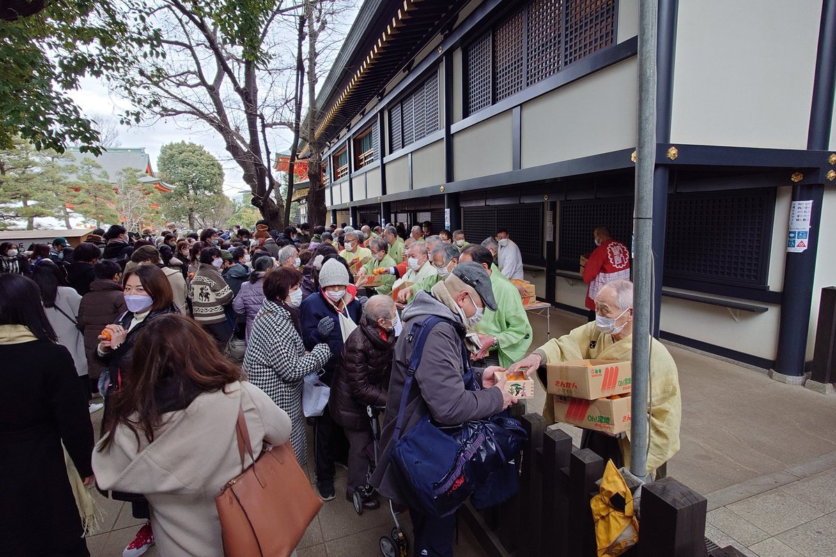 午後に穴八幡宮の豆まきにお伺いさせていただきました。豆まきの後、みかんの配布がおこなわれました。