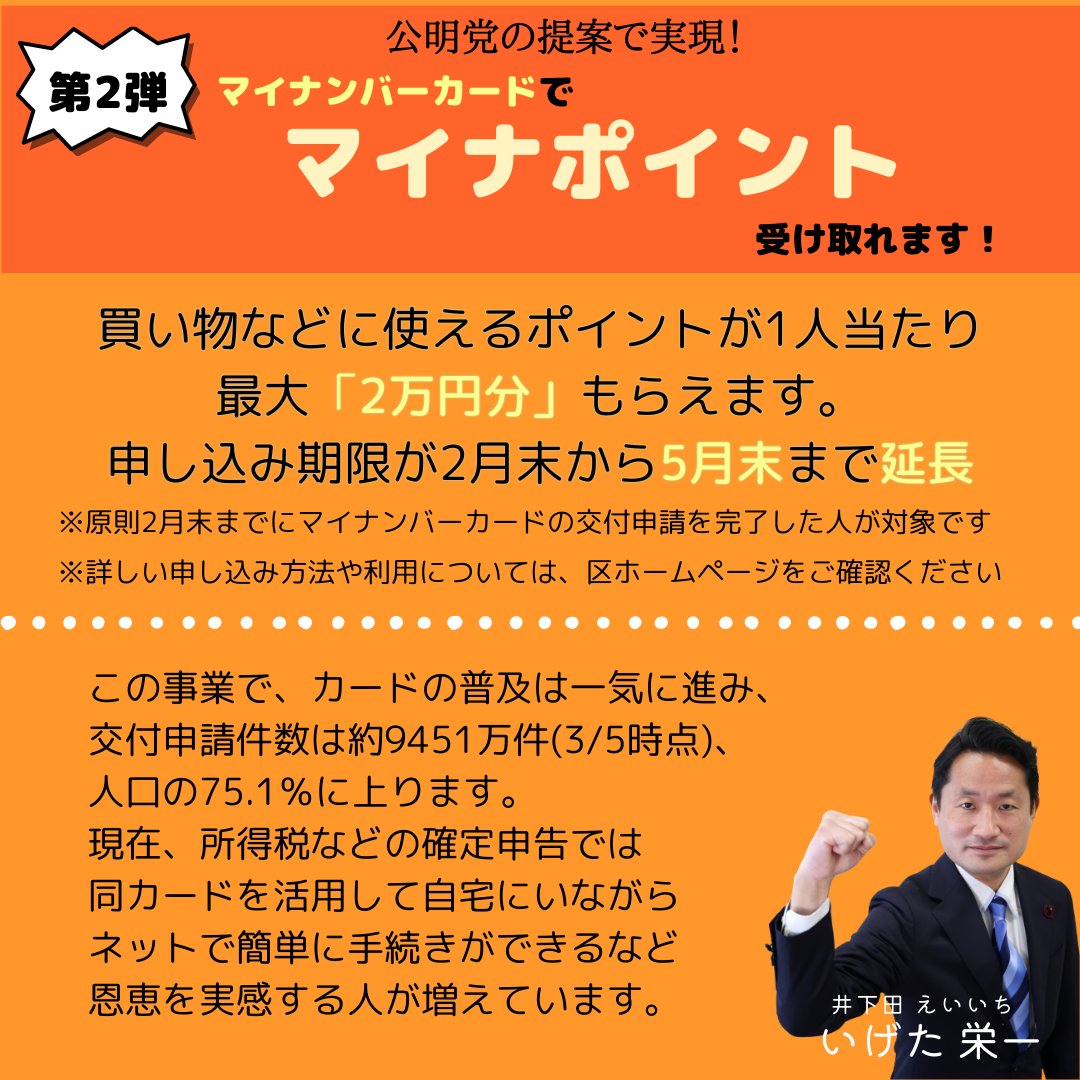 #公明党 の提案で実現した #マイナポイント第2弾 5月末まで延長されました🙌🏻