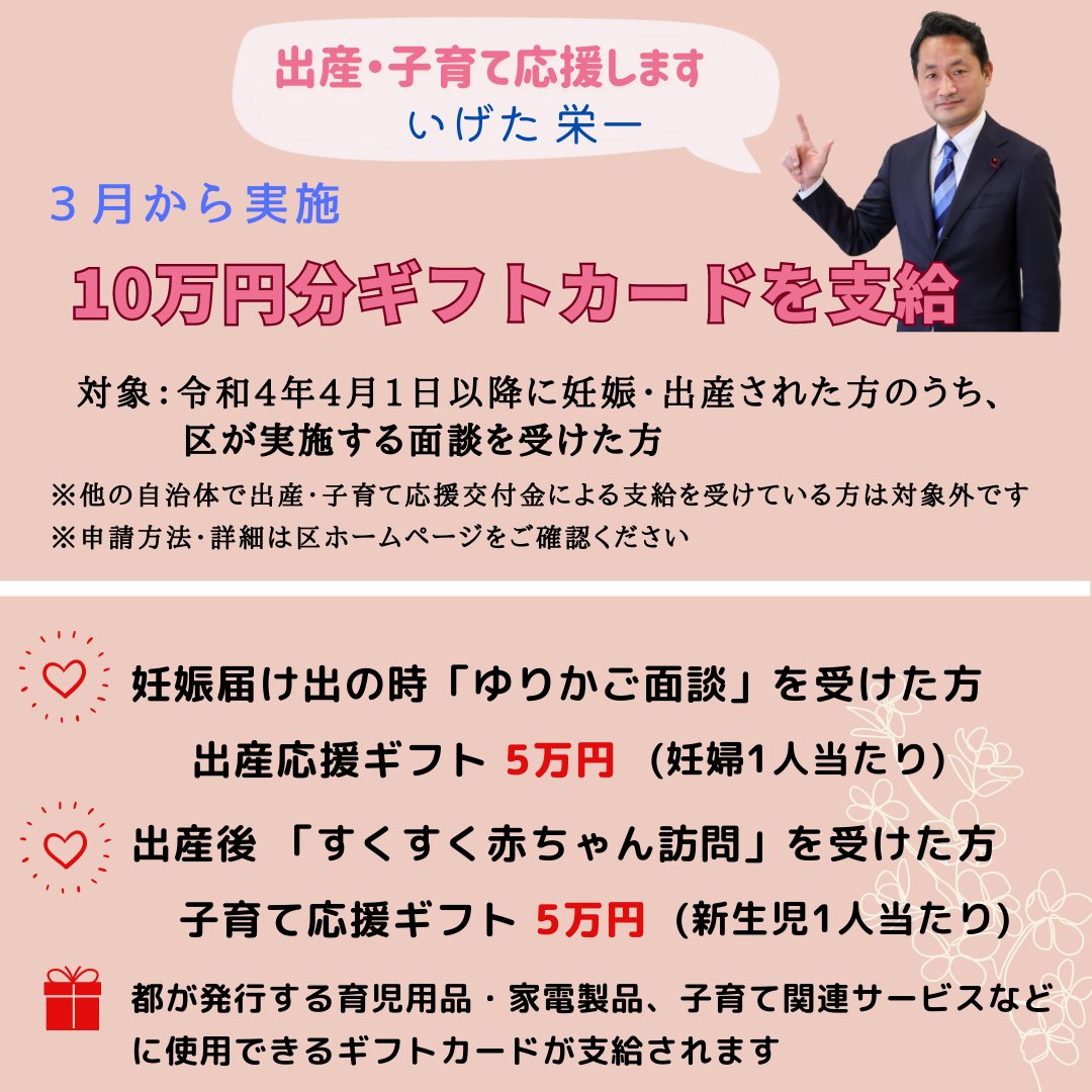 こんにちは #いげた栄一 です #新宿 の #桜🌸も少しずつ咲き始めてきました。 さて #公明党 が推進した #出産・子育て応援ギフト の支給が3月から始まりました✨ 育児用品や子育て支援のサービスに利用できるギフトカードが #妊娠時 5万円 #出産後 に5万円 支給されます #子育て支援 #区議会議員