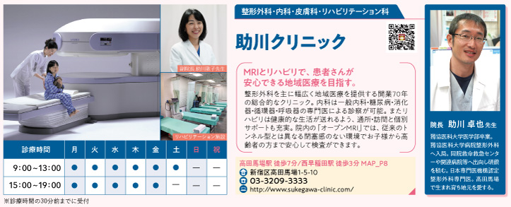 #助川クリニック MRIとリハビリで、患者さんが安心できる地域医療を目指す。開業70年の総合的なクリニック。内科は一般内科・糖尿病・消化器・循環器・呼吸器の専門医による診察が可能。 #高田馬場 #助川クリニック #整形外科 #内科