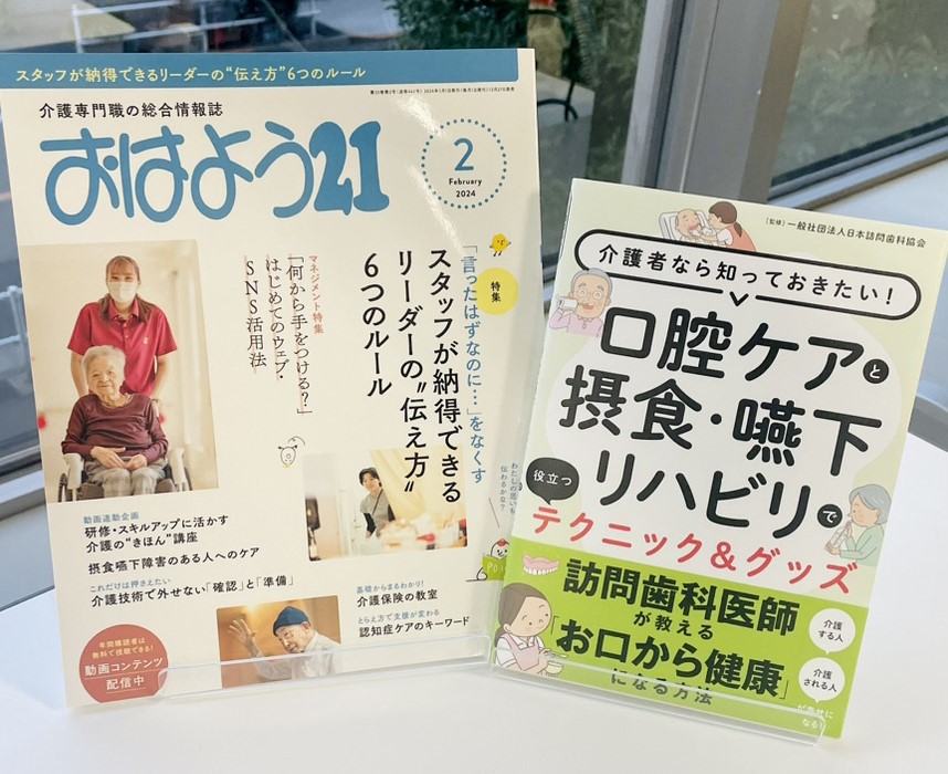介護の専門雑誌「おはよう21」2月号の書評で『口腔ケアと摂食・嚥下リハビリで役立つテクニック&グッズ』が掲載されました✨