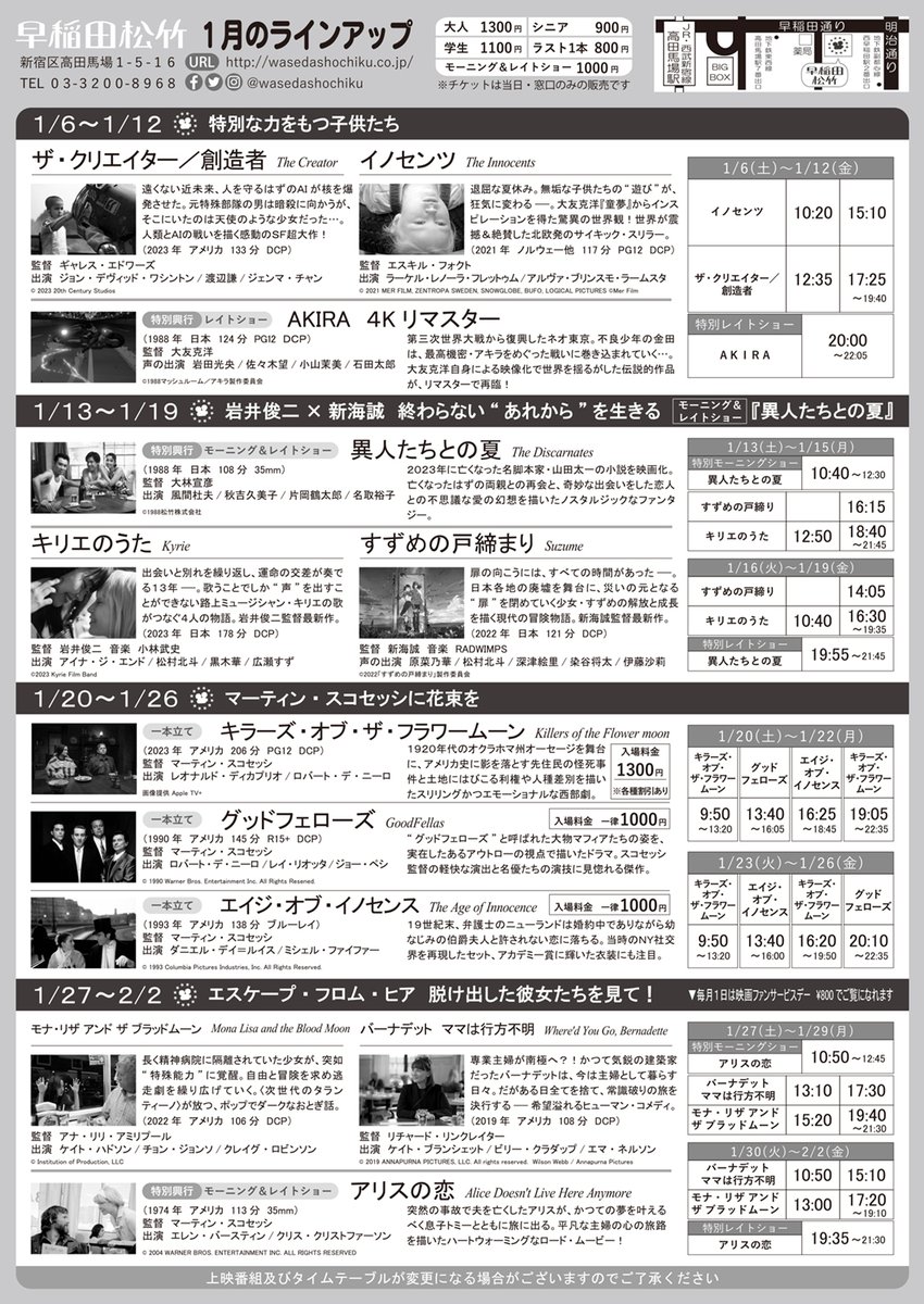 ★2024年1月のラインアップちらしが出来上がりました!ただいま絶賛配布中です📜