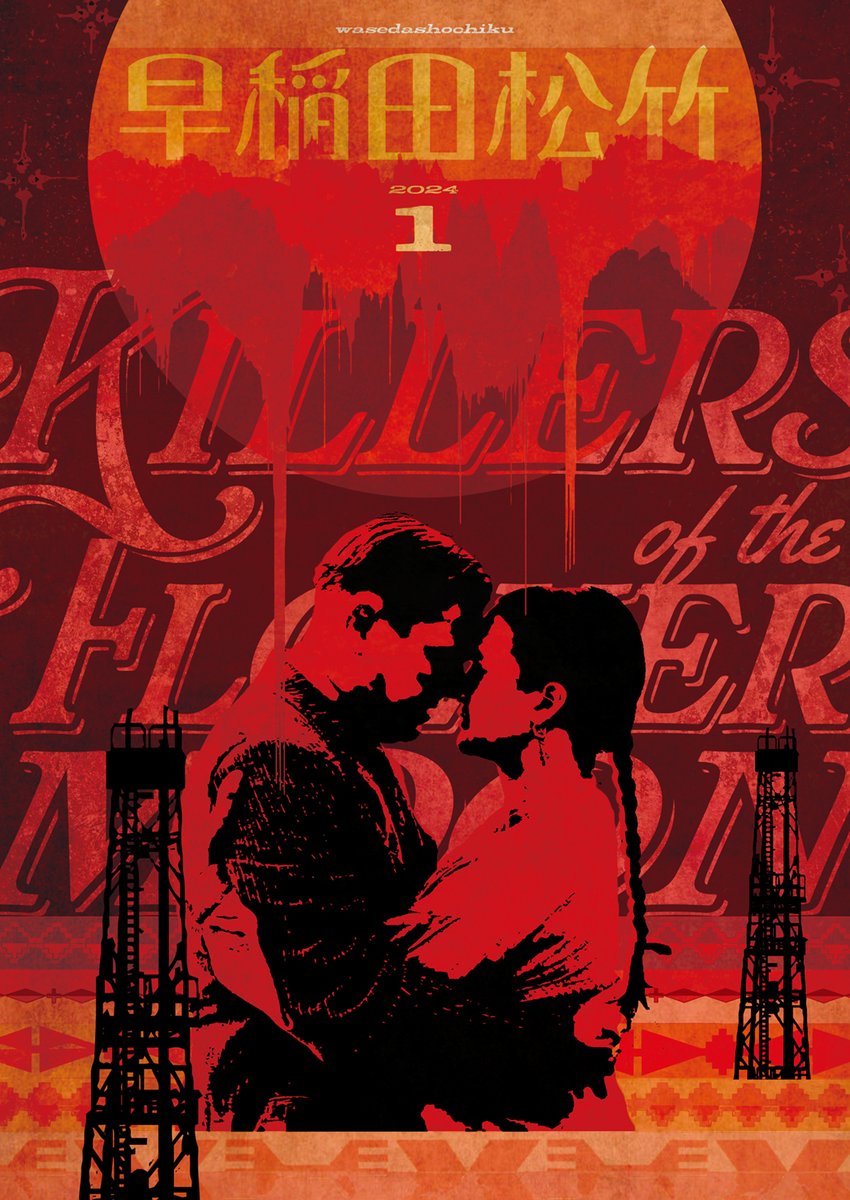 今年1発目は、スコセッシ監督の『キラーズ・オブ・ザ・フラワームーン』。石油採掘に沸くオクラホマで起きる殺人事件ということで、血と油の臭いがしてきそうなイメージでデザインしました。