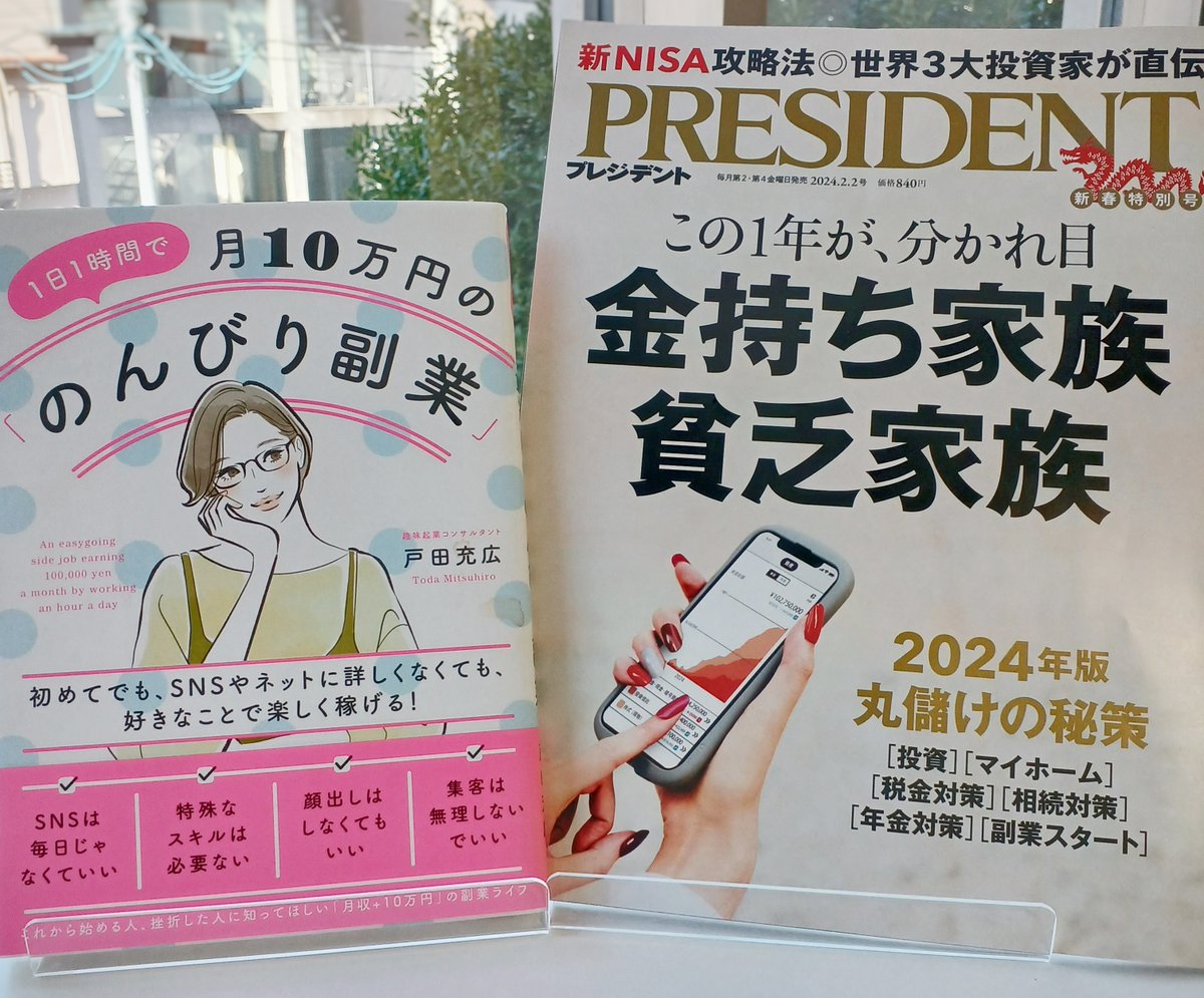 雑誌「プレジデント」新春特別号に『1日1時間で月10万円の「のんびり副業」』の著者、戸田充広先生が寄稿! これから飛躍しそうな副業や、ビジネスパーソンにおすすめの副業が紹介されています🫰