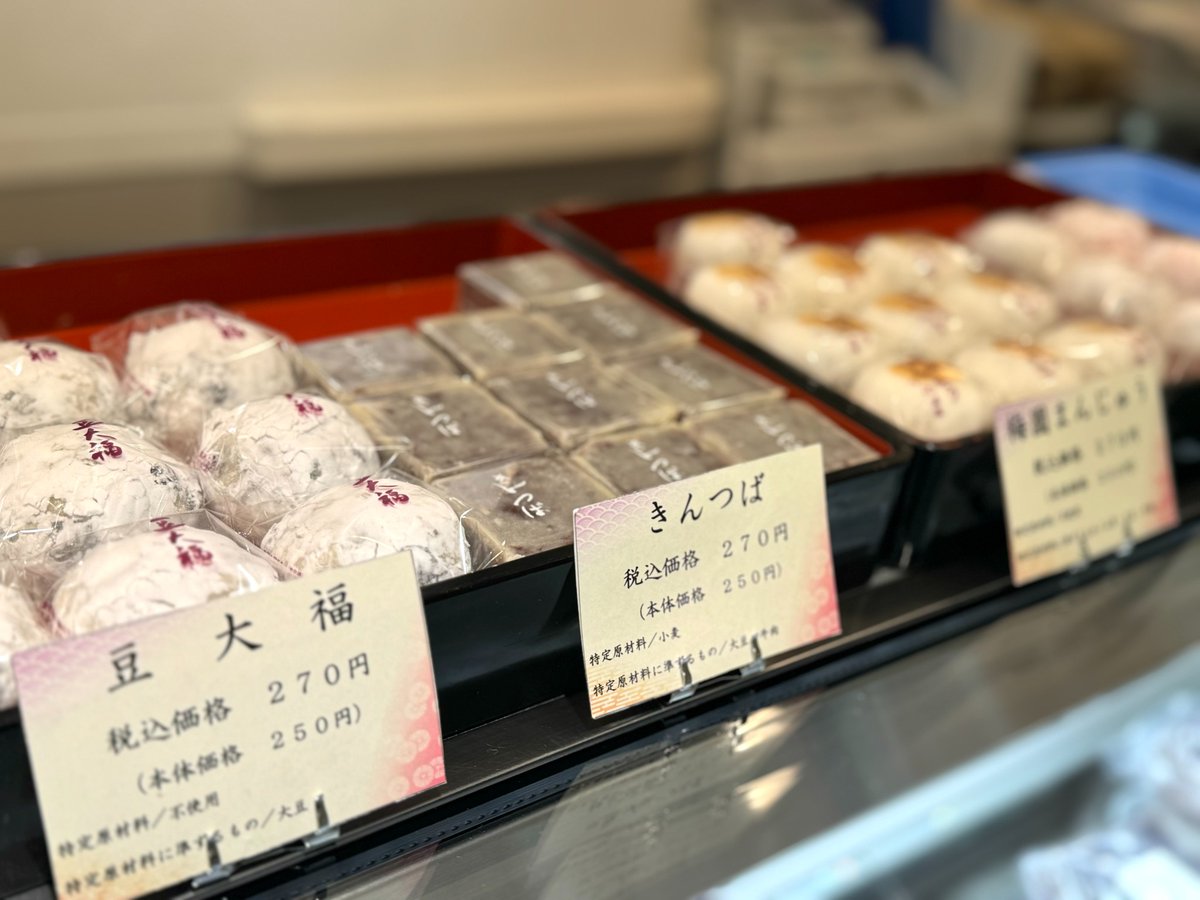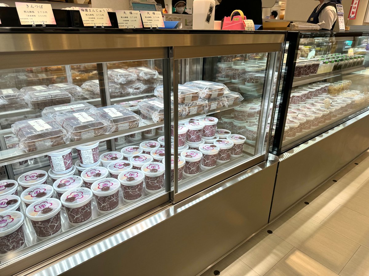 地下1階=和洋菓子売場<おかし日和>に期間限定で<浅草梅園>が登場✨浅草寺の門前にある甘味処で、季節折々の和菓子を作り続けています。食感の良い寒天に口どけなめらかな餡、甘酸っぱい果実が相性抜群な人気の「あんみつ」をはじめ、「豆大福」なども取りそろえております😆※5/21(火)まで