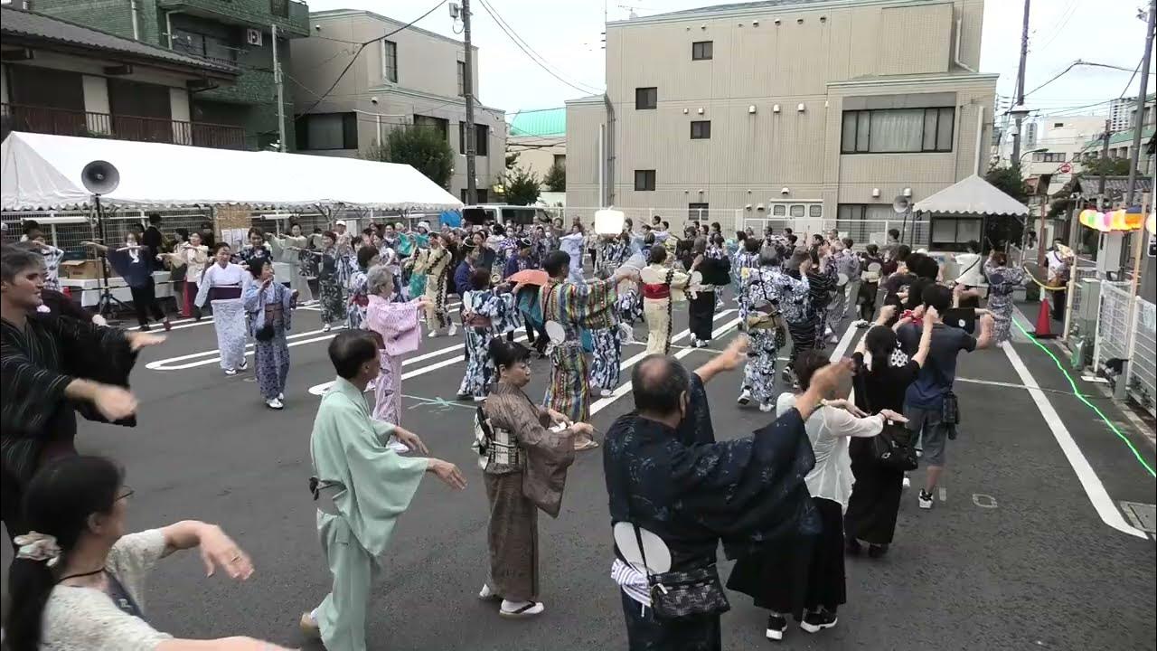信濃町ふるさと音頭 2025年信濃町町会小さな盆踊り1 外苑東通り 信濃町教会隣駐車場