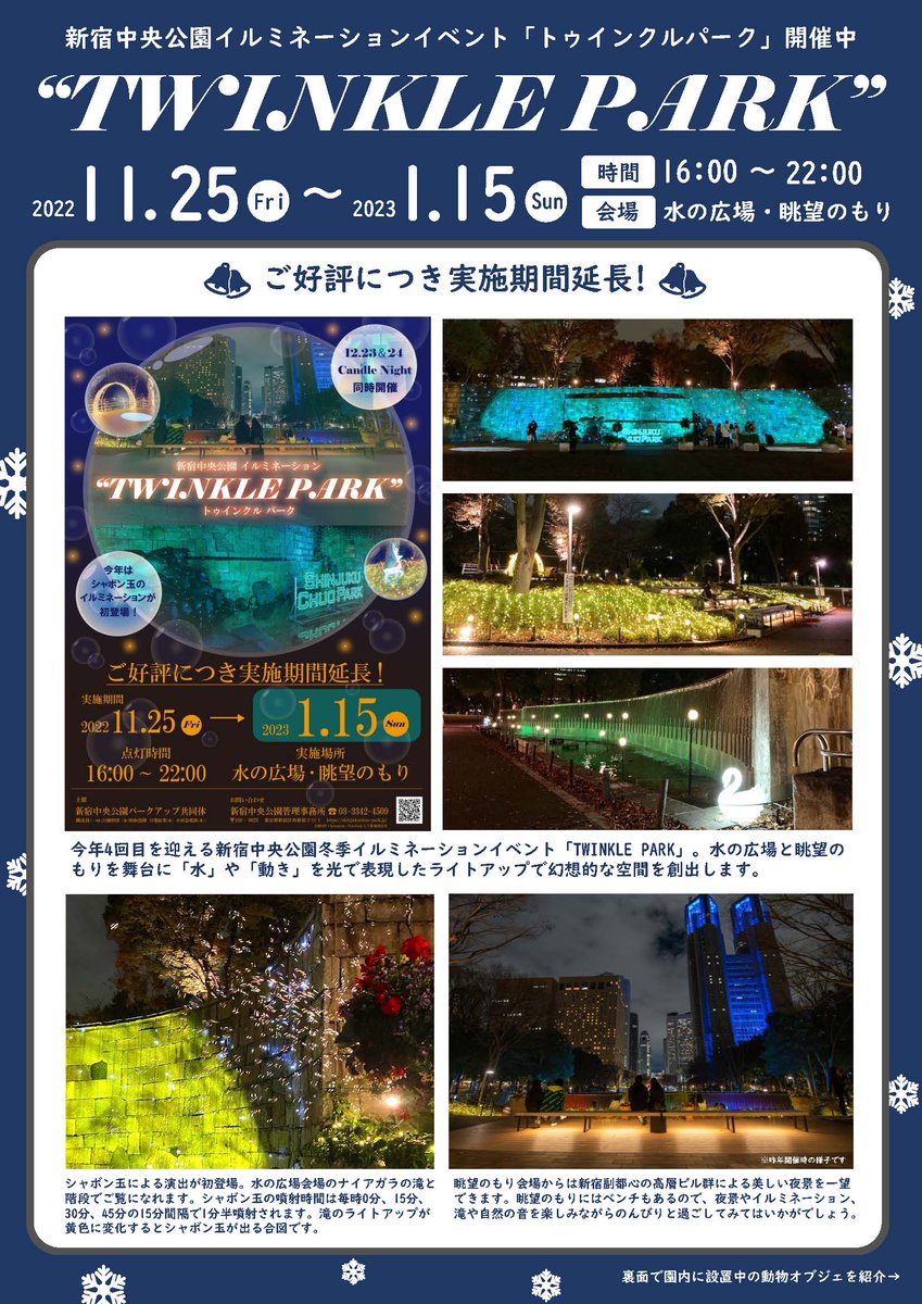 【TWINKLEPARK実施期間延長!】大変好評につき、#新宿中央公園の冬季イルミネーションが延長になりました!自然と高層ビル群に囲まれた会場で、新宿中央公園ならではの美しいライトアップをお楽しみくだ..
